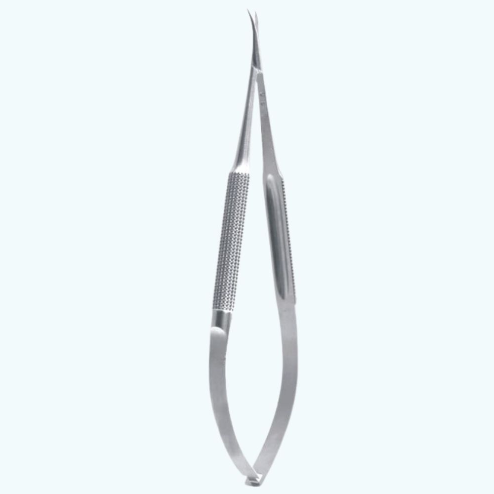 The micro scissor boasts a streamlined design for improved control during surgery. It includes a double spring thumb handle that enhances the comfort of dissection, along with serrations on the handle to ensure a secure grip. Available in both straight and curved varieties, the straight version is ideal for superficial dissection, while the curved variety excels in deep dissection.